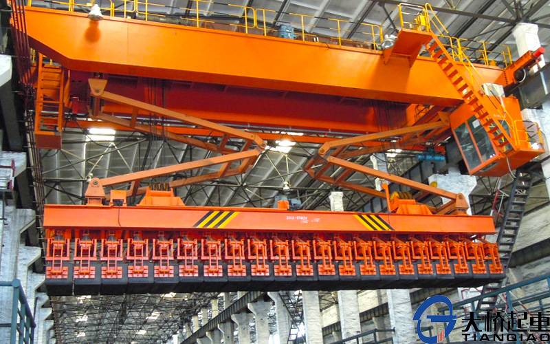 該機是大型預焙陽極電解鋁廠碳塊倉庫內的關鍵設備,可夾運生、熟陽極塊,通過鏈式(或板式)運輸機將炭塊搬運到指定地點。
