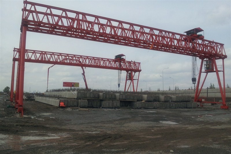 該設(shè)備既可兩臺配合抬吊預(yù)制梁,也可以單臺起重機配雙吊具起吊預(yù)制梁。主要用于將預(yù)制梁從制梁臺提吊至存梁臺位,預(yù)制梁養(yǎng)護(hù)完成后將其從存梁臺位吊運到運梁車上。