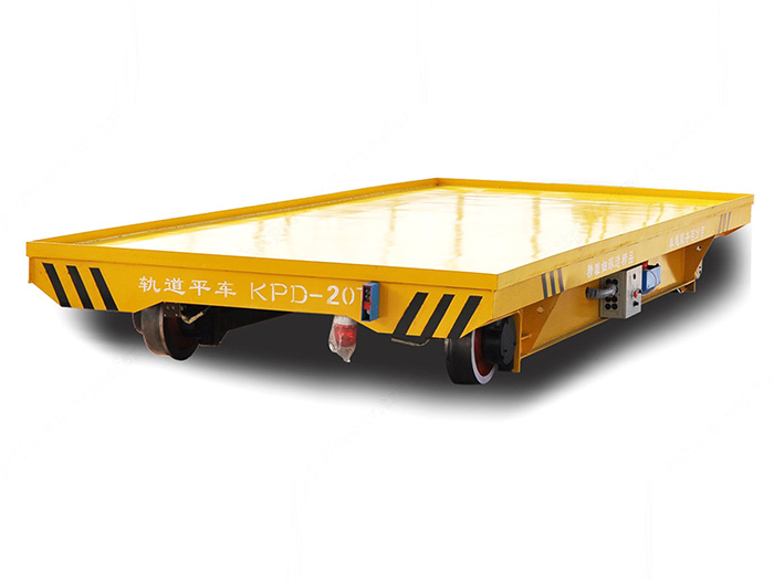 電動(dòng)平車,又稱電動(dòng)平板車、電平車、臺(tái)車、過(guò)跨車、電動(dòng)軌道車、地爬車等,是一種廠內(nèi)有軌電動(dòng)運(yùn)輸車輛,**它是一種軌道型運(yùn)輸車輛,需要在地面上鋪設(shè)軌道,軌道一般為工字型面接觸道軌;其次它是電驅(qū)動(dòng)車輛,在電機(jī)減速機(jī)驅(qū)動(dòng)下自動(dòng)運(yùn)行,再次它是一種平板車,臺(tái)面平整無(wú)廂蓋,特殊情況下也可以是非平面但無(wú)廂蓋,車體無(wú)方向盤(pán)只有前進(jìn)后退方向(即使轉(zhuǎn)彎也城靠軌道轉(zhuǎn)彎)。此種車輛具有結(jié)構(gòu)簡(jiǎn)單、使用方便、承載能力大、不怕臟不怕砸、維護(hù)容易、使用壽命長(zhǎng)等特點(diǎn),因其方便、壯實(shí)、經(jīng)濟(jì)、實(shí)用、易清理等諸多優(yōu)點(diǎn),成為企業(yè)廠房?jī)?nèi)部及廠房與廠房之間短距離定點(diǎn)頻繁運(yùn)載重物的首選運(yùn)輸工具。